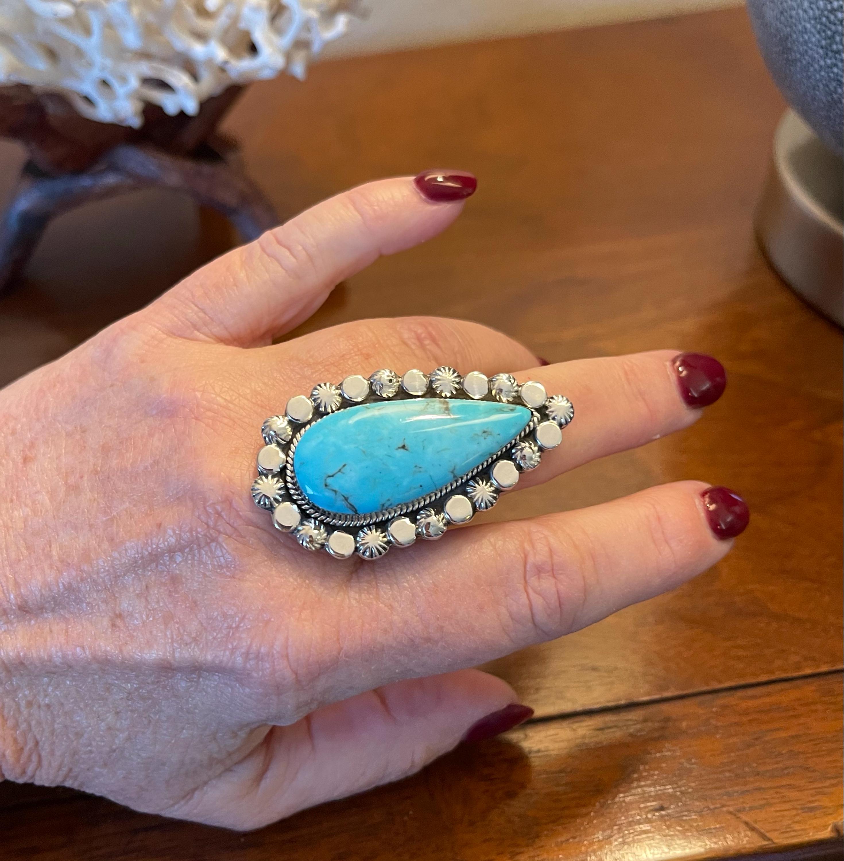 Sterling Silver Turquoise Greg Yazzie Navajo Ring