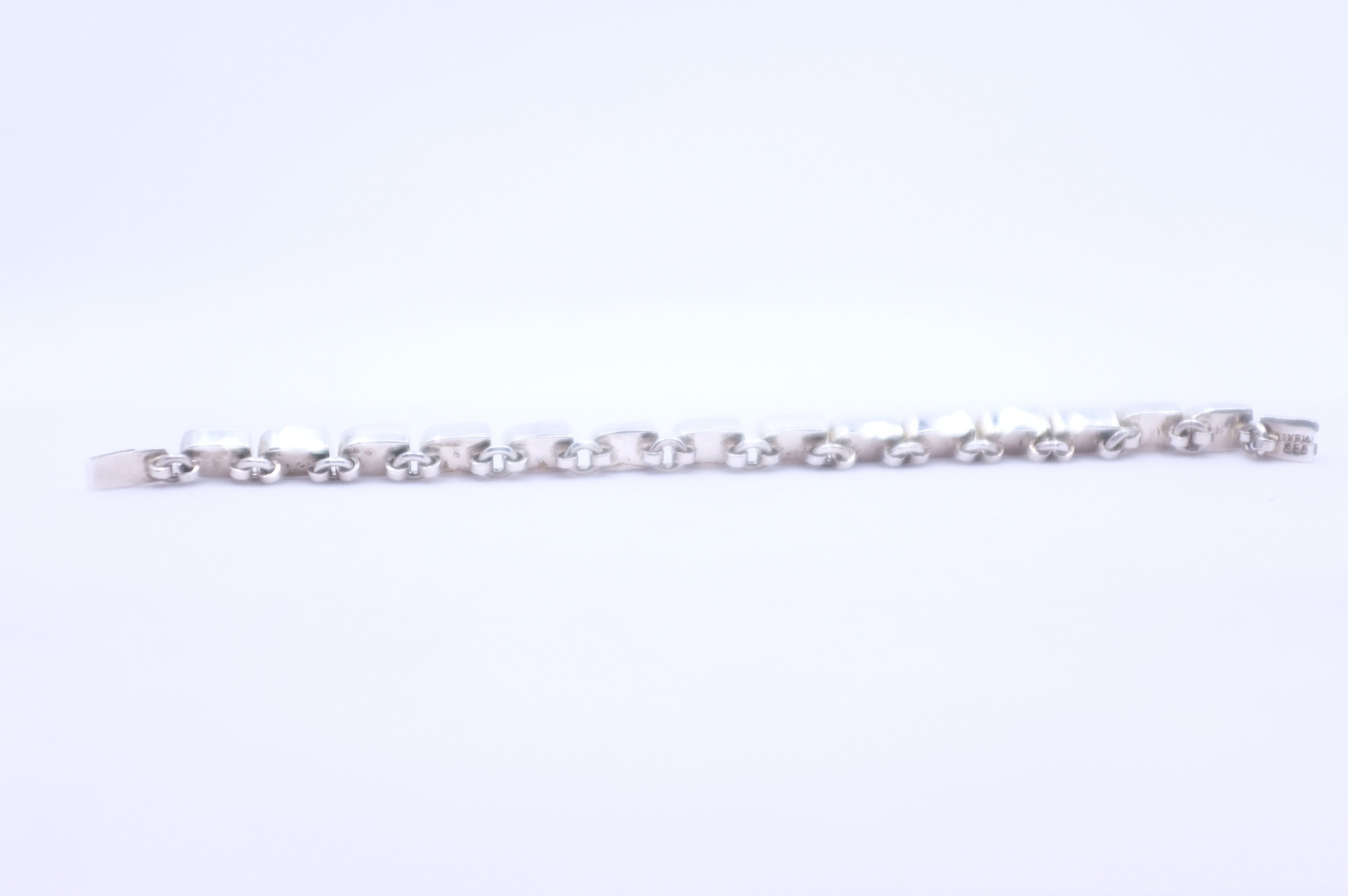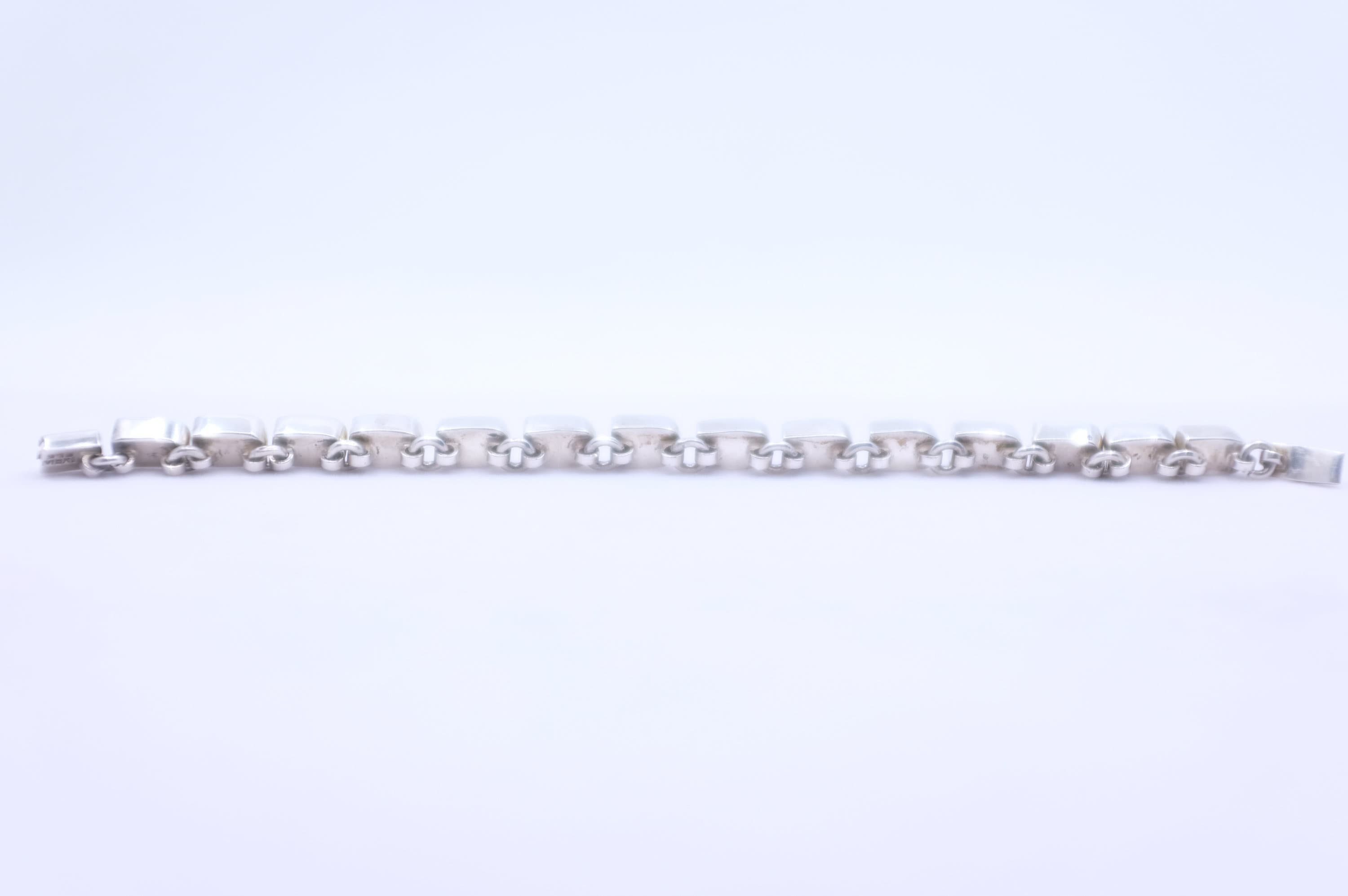 This bracelet can be worn alone with a great onyx ring. This ring can be worn with plain silver rings. This bracelet can be styled with another statement bracelet on the other wrist. It can be worn with denim or satin. Leather or lace! Its unique series of shapes keeps you looking different from all the rest.