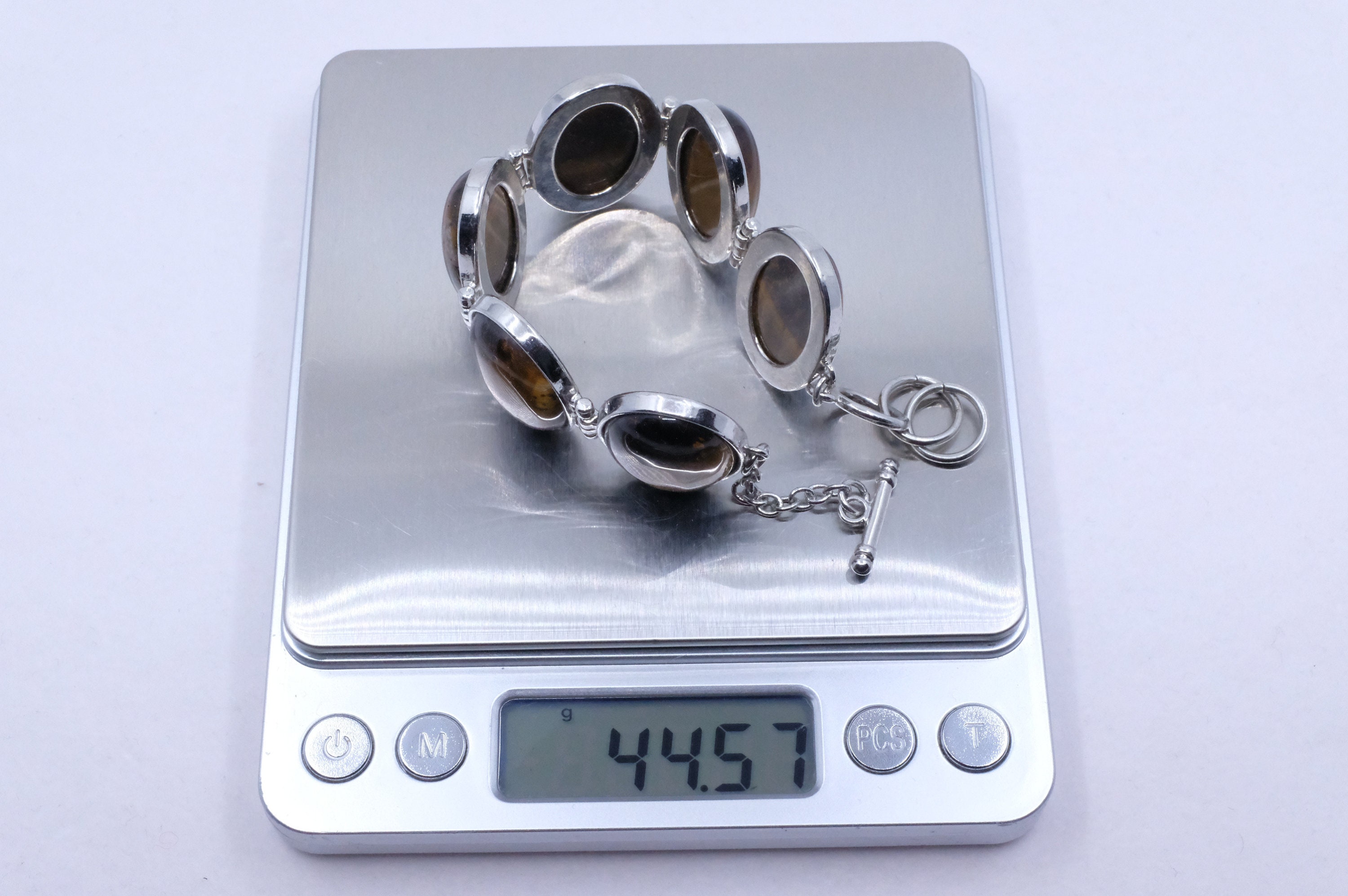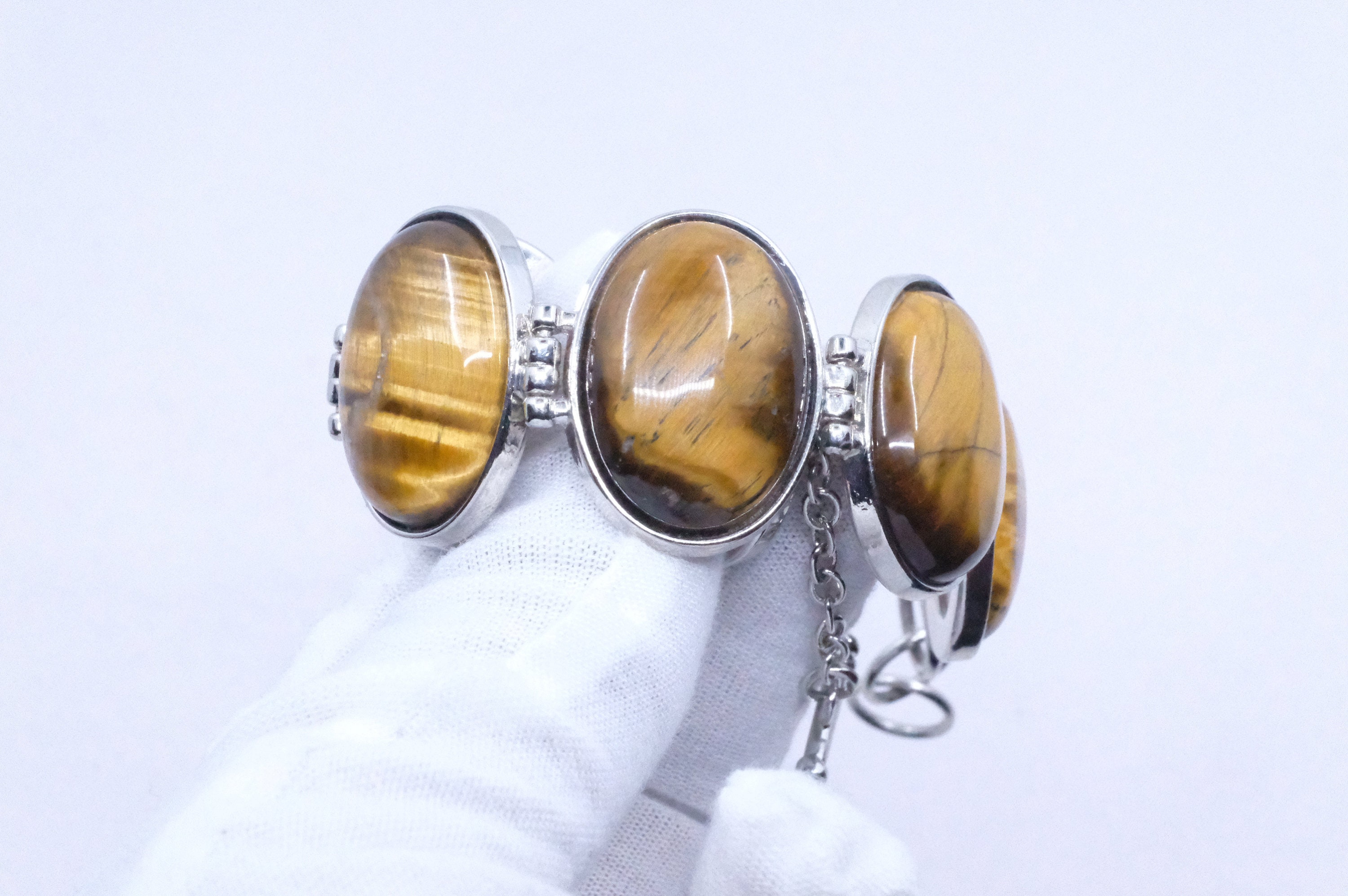 Sterling Silver Tiger's Eye Modernist Link Bracelet