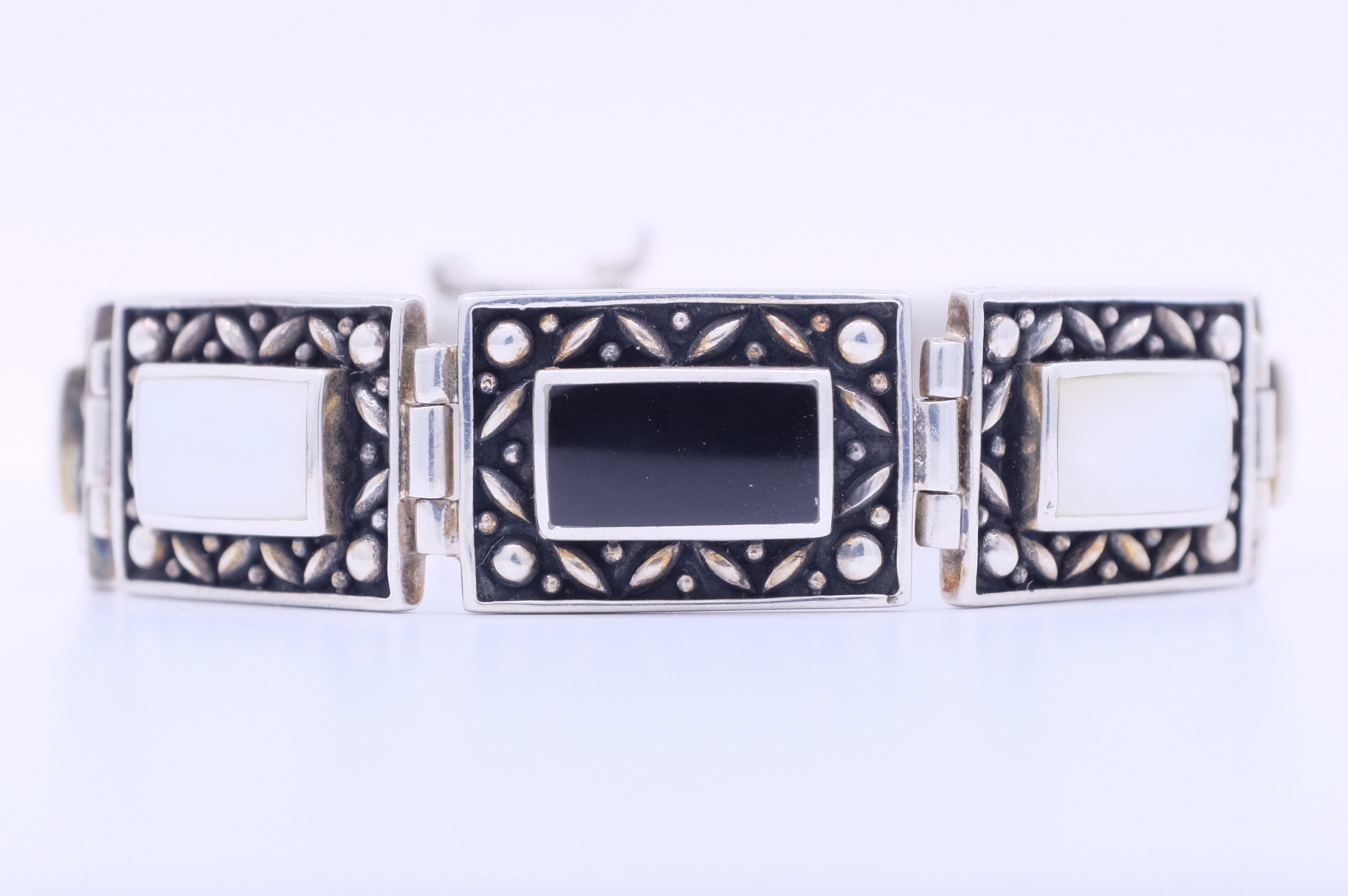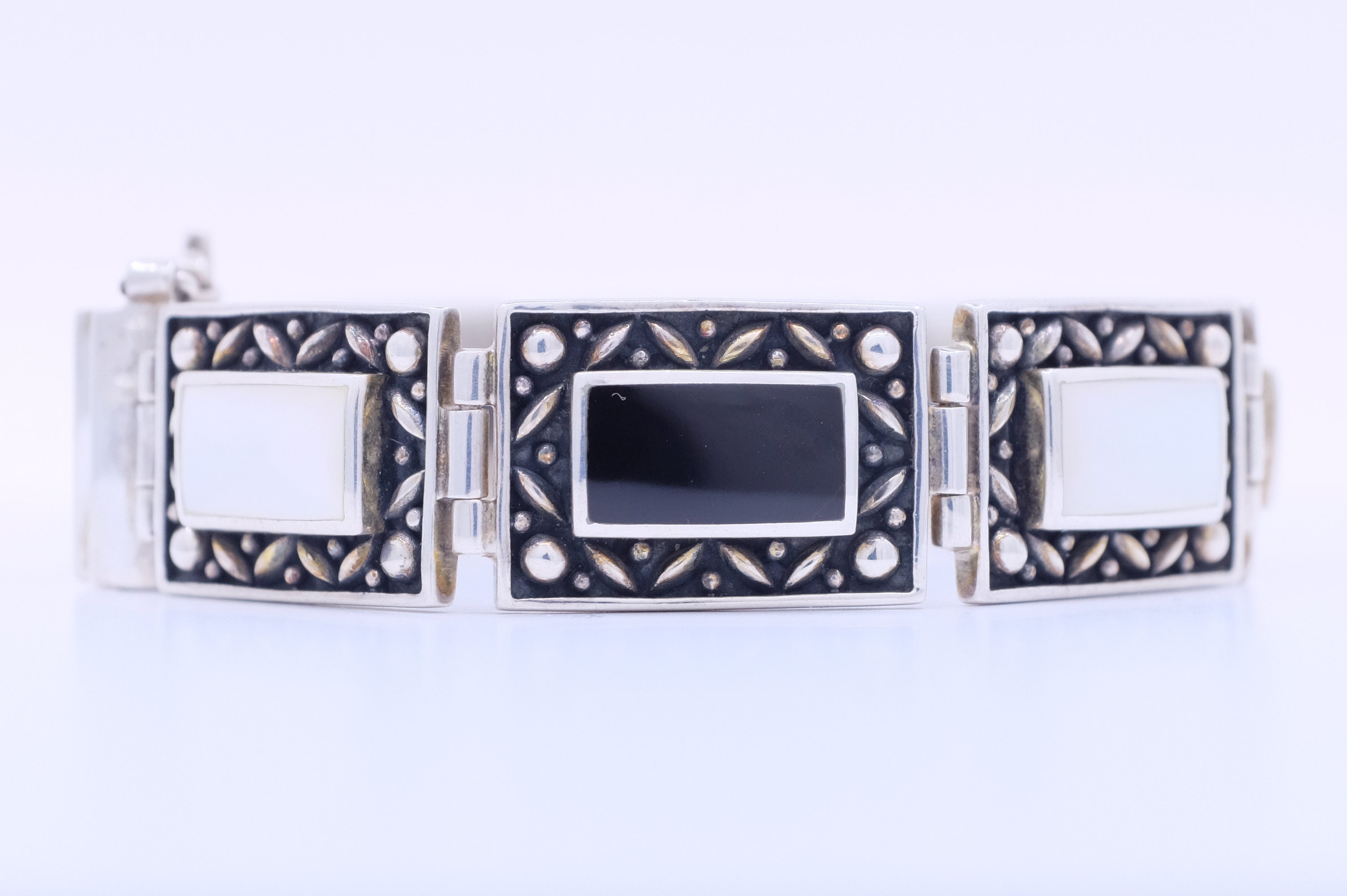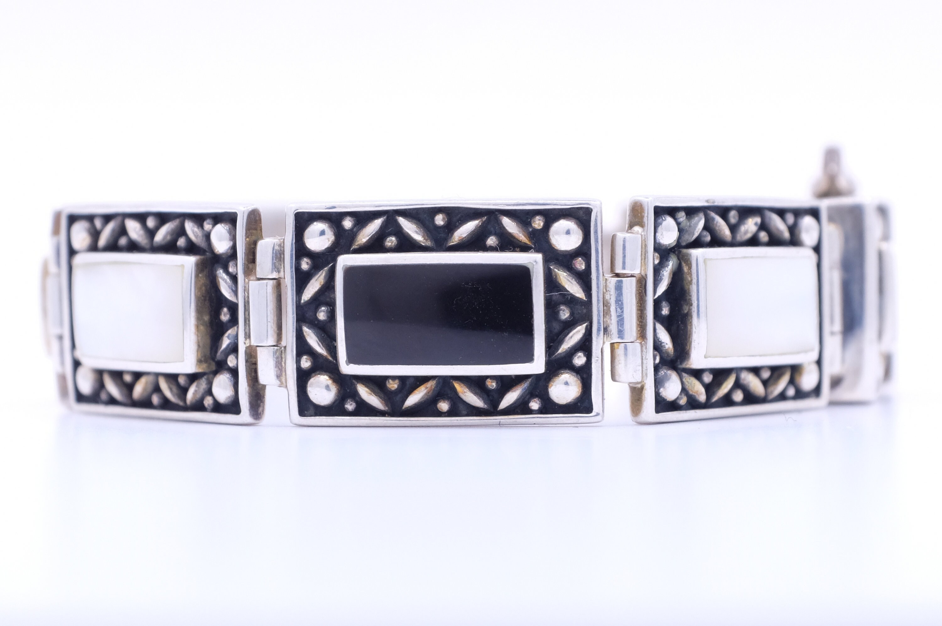 Sterling Silver Mother of Pearl and Black Onyx Bracelet