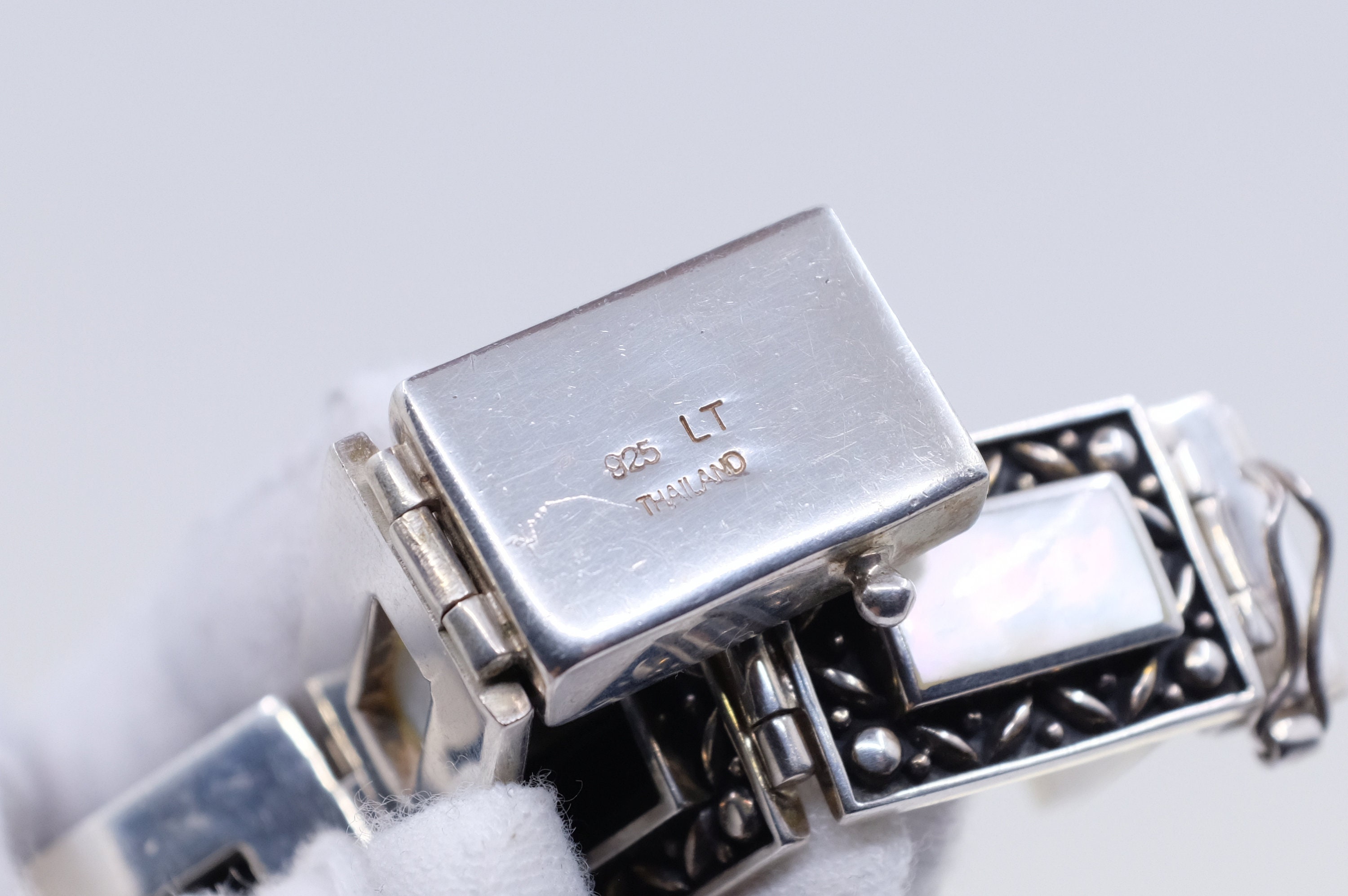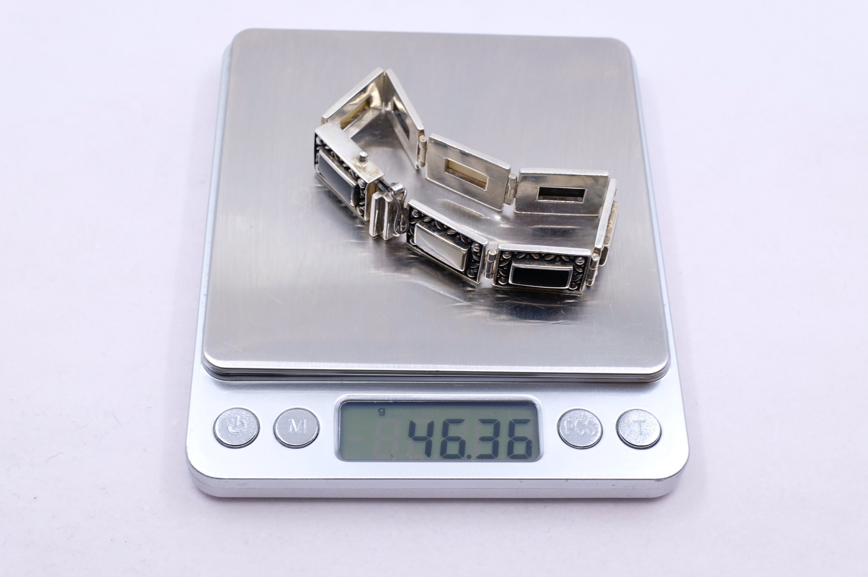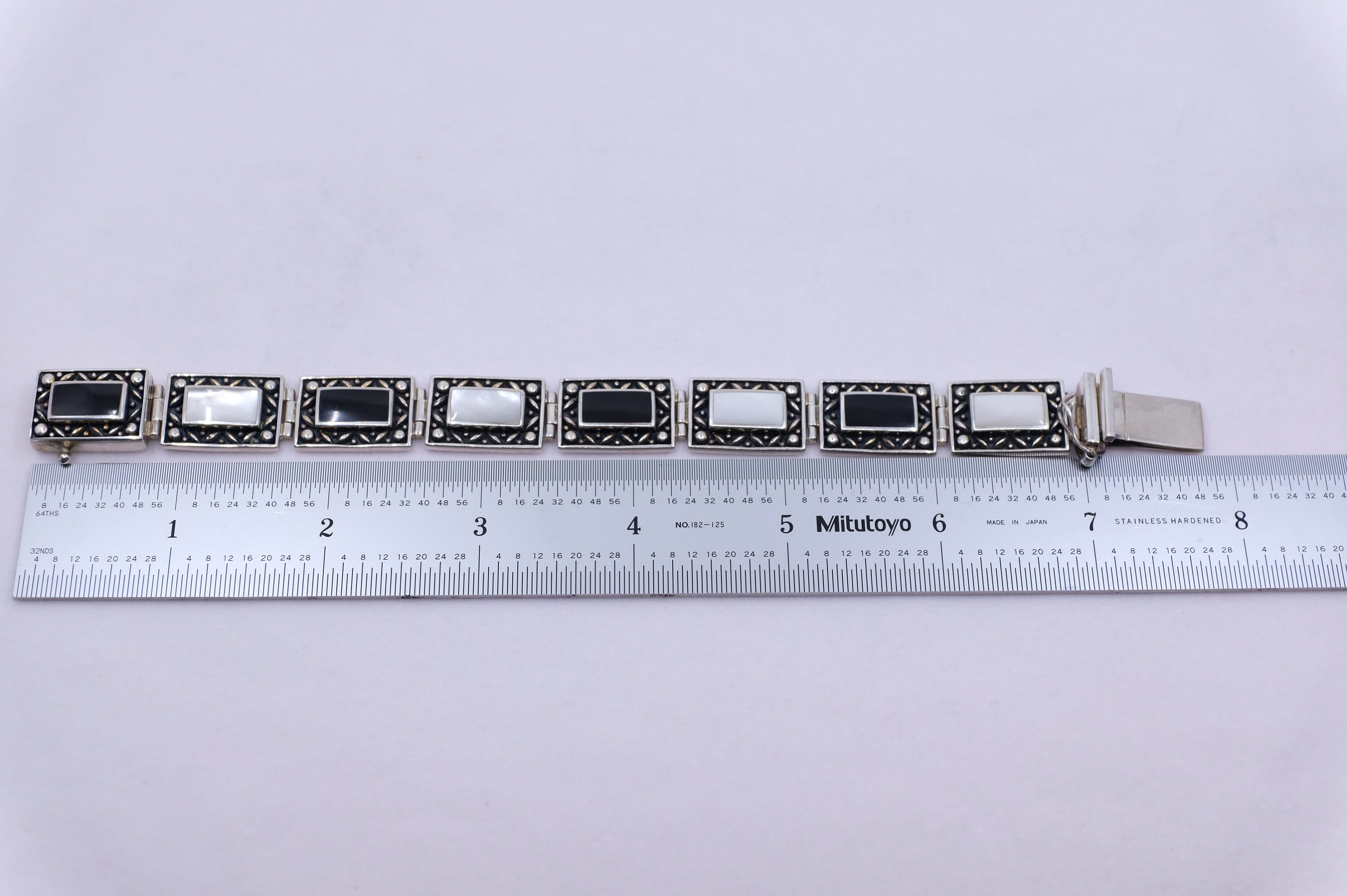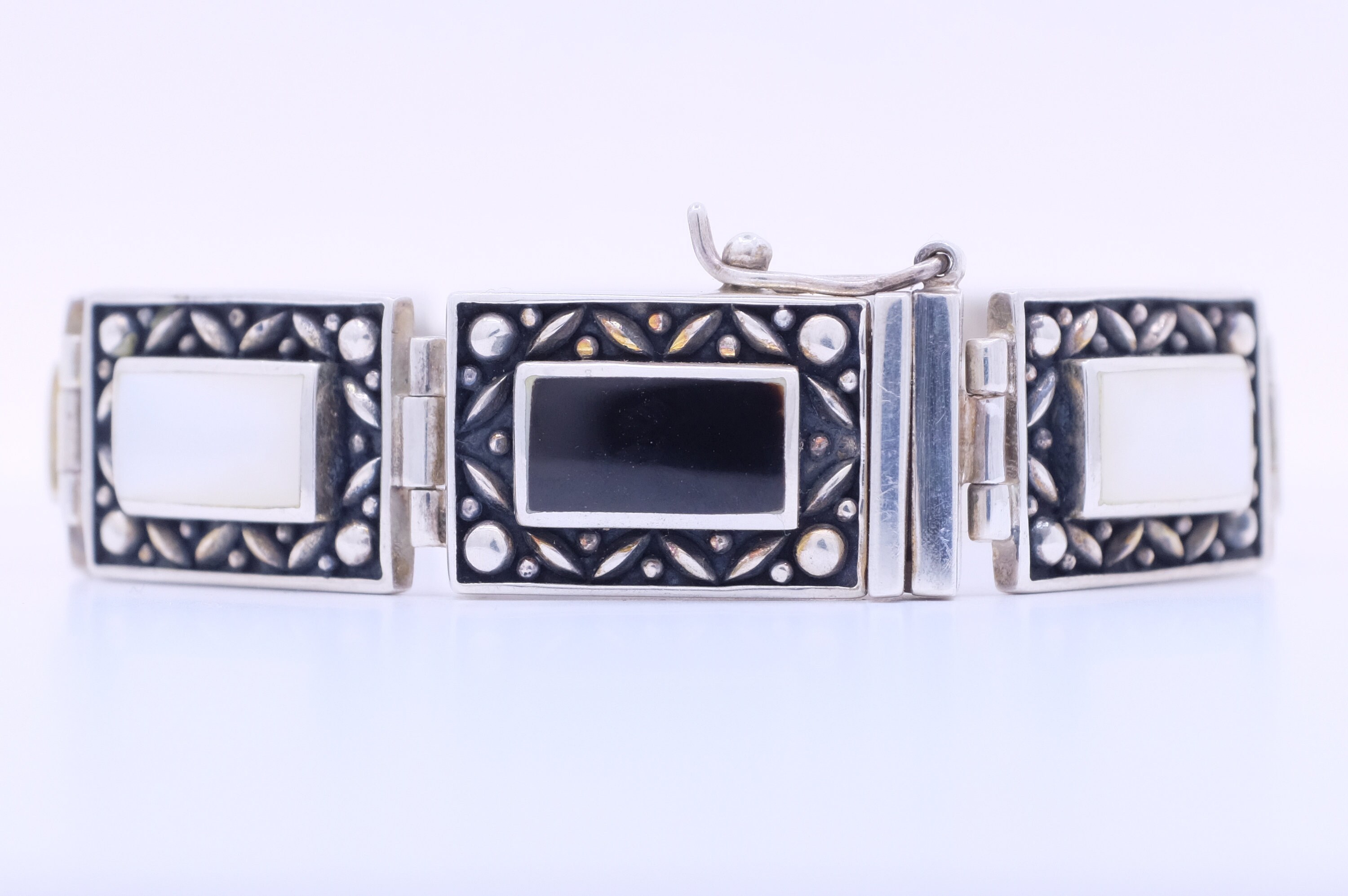 Sterling Silver Mother of Pearl and Black Onyx Bracelet