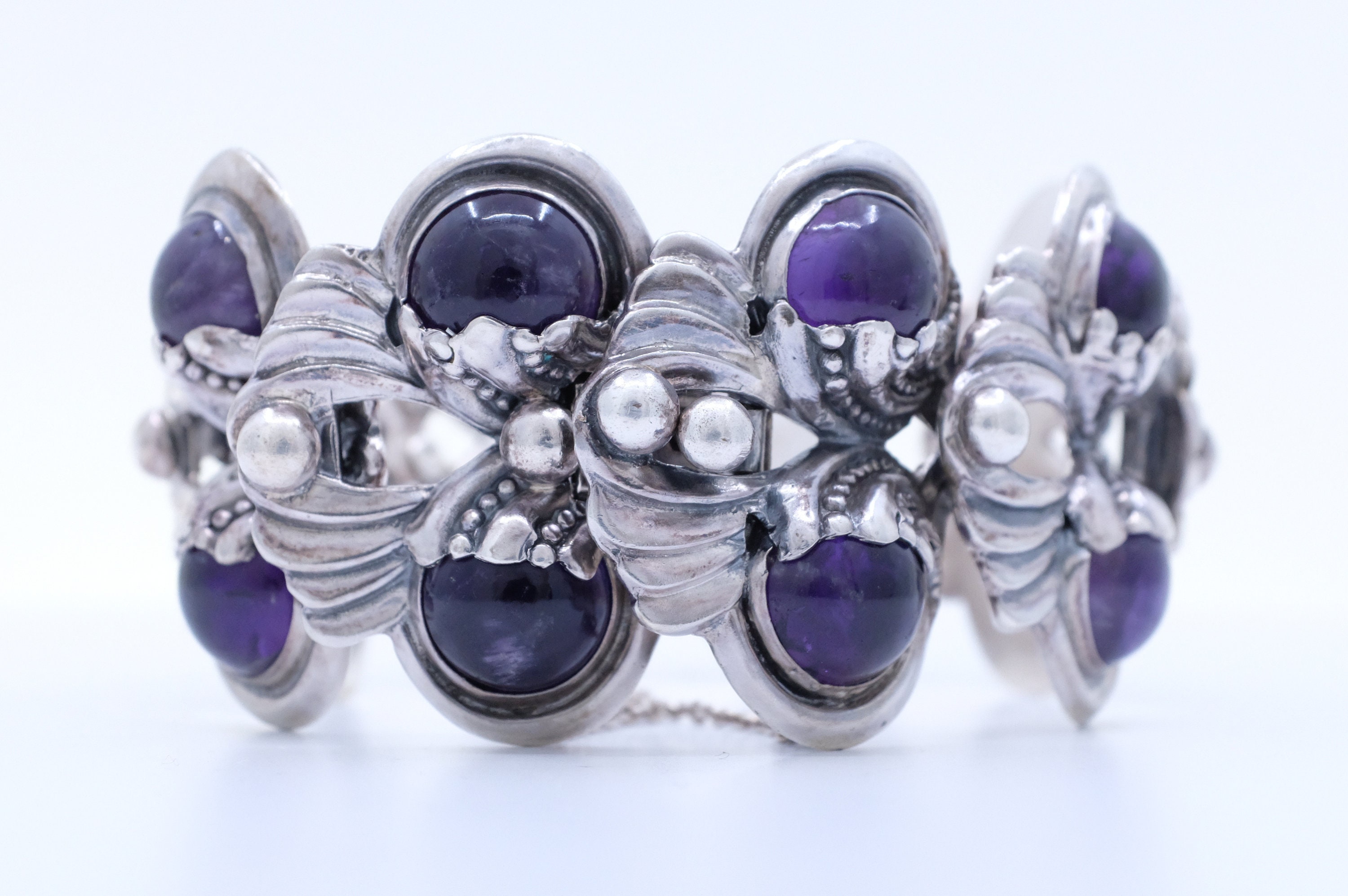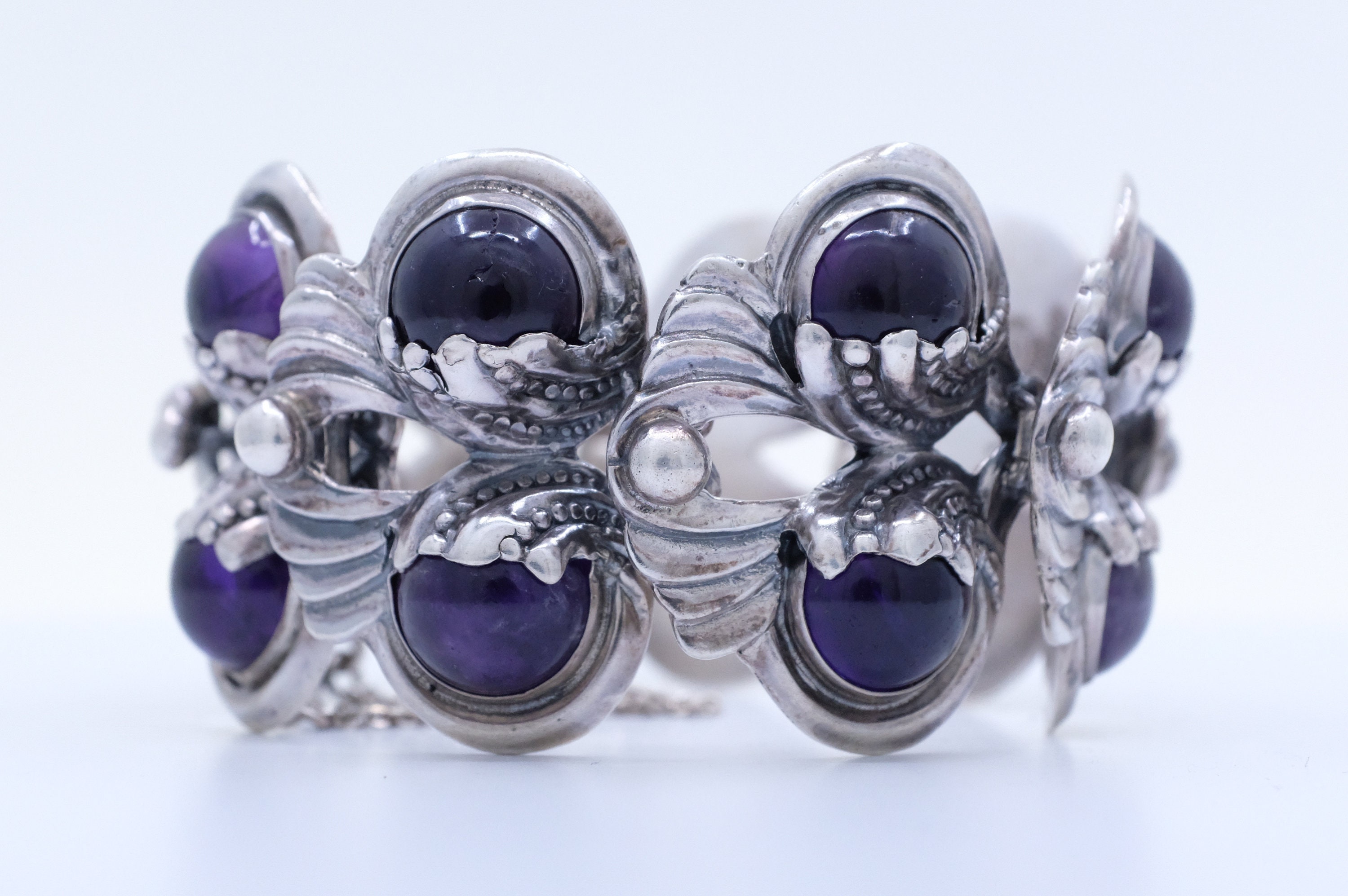 Sterling Silver Purple Cabochon Margot de Taxco Bracelet