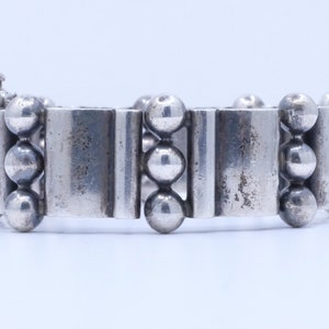 If there is someone whom I wish I could interview, it would be maestro Antonio Pineda. His designs are some of the most imaginative and enduring sterling silver jewelry designs of the last 100 years. He was primarily a modernist jewelry designer. We're lucky to have come across just one of his designs. This sophisticated modernist bracelet features concave articulated wedges. In my mind, it's a silver sculpture that you get to wear. A person who designs in this way really reveres the wearer. I am so lucky to be able to share it with you.