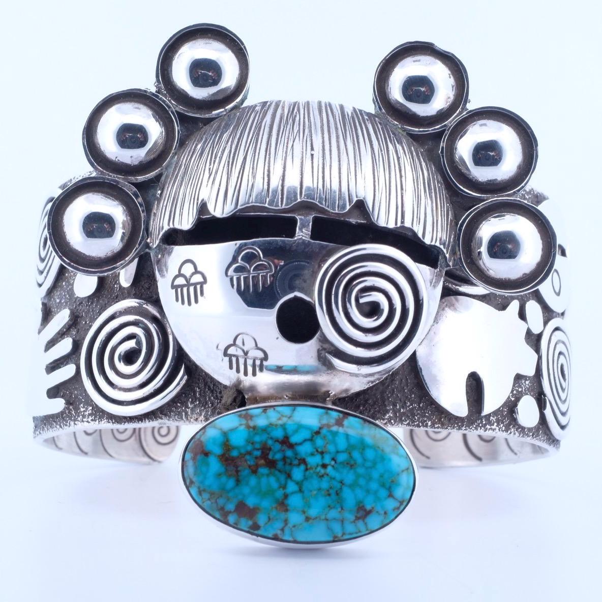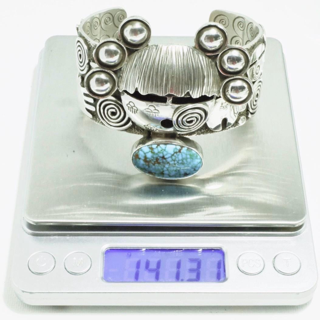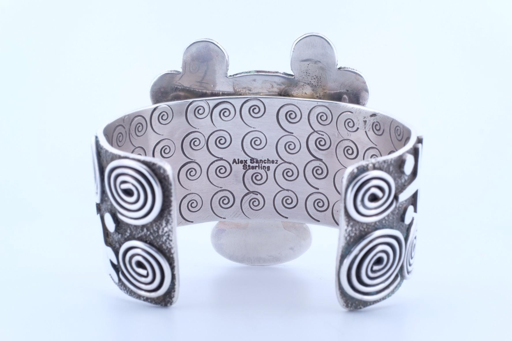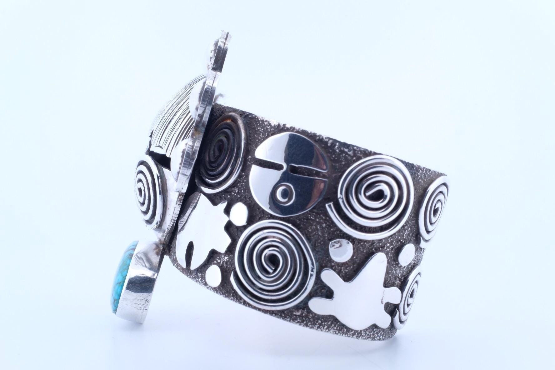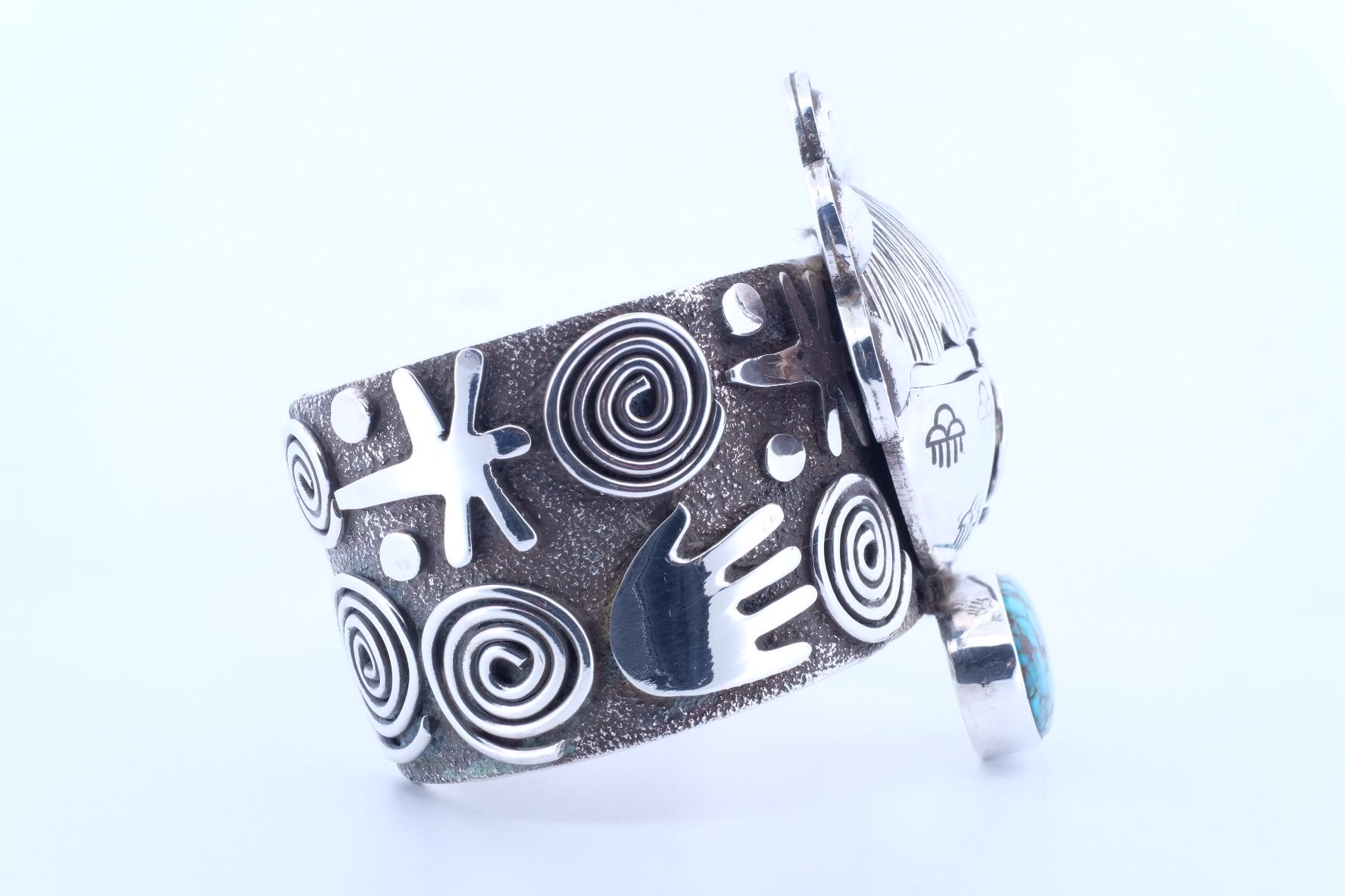 Sterling Silver Turquoise Alex Sanchez Navajo Petroglyph Cuff Bracelet