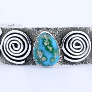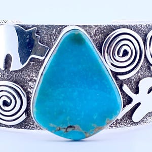 Alex Sanchez Petroglyph Sonoran Gold Turquoise Sterling Silver Navajo Cuff Bracelet 1/2 in.