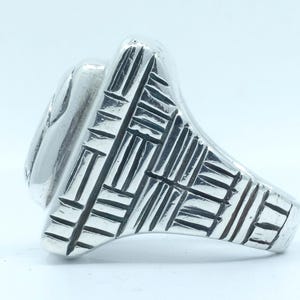 This sterling silver ring is perfect, weighing just 14 grams. It features a flat cut of a special blue stone called lapis lazuli, set in a beautiful and fancy Balinese design that looks amazing. Now, if you're wondering what lapis is, get ready for an exciting story about this stunning gem.