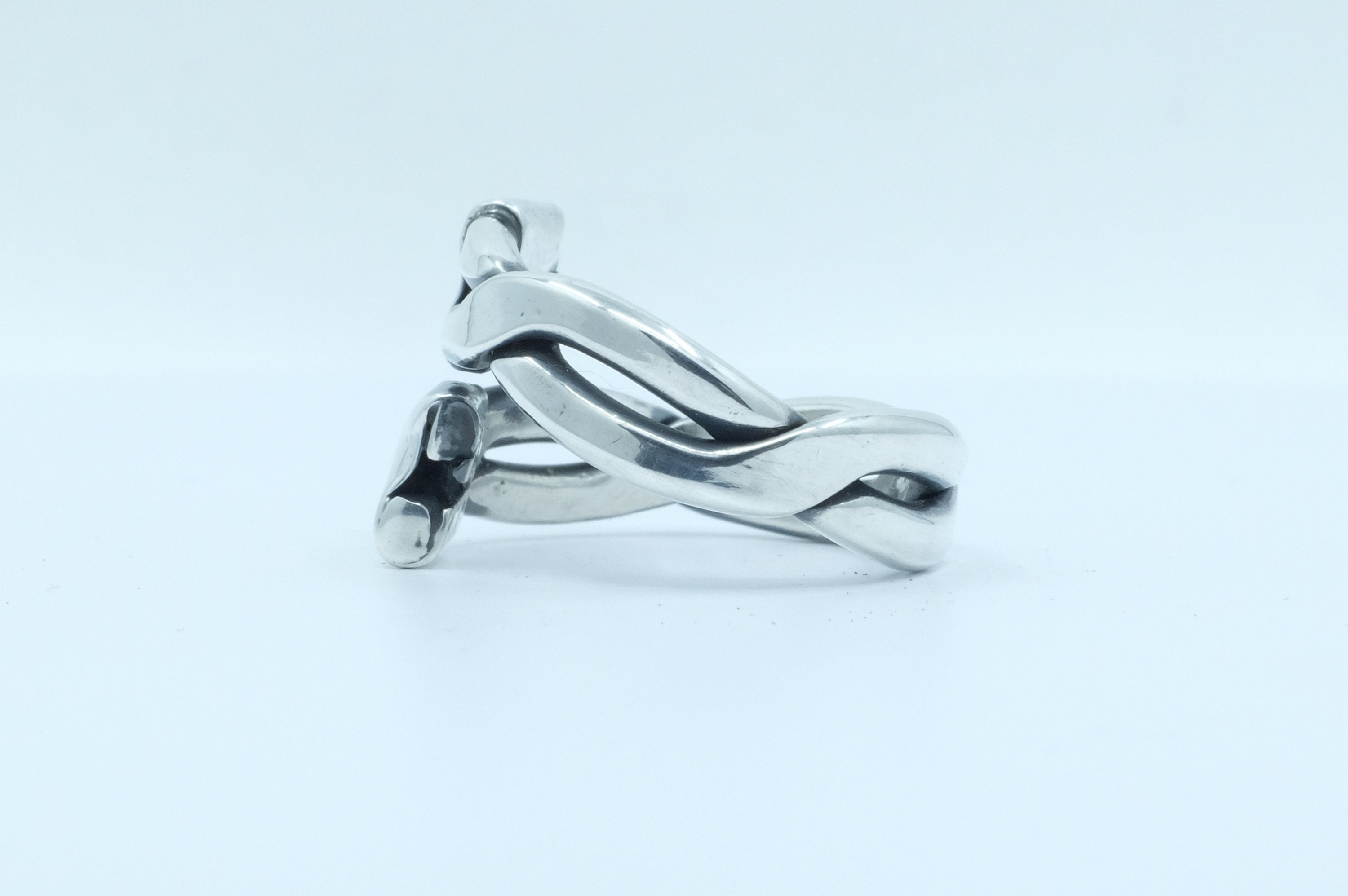 Look at this vintage sterling silver ring with this twist detail. The detail is in the patina. It's an easy ring to love. Simple designs are often best, and this rare find is no different. Braids and twists have worked their way into so many areas of human life. We love the simplicity and practicality. From closing the loaf of bread to doing your hair, many things, like this ring, end with a twist.