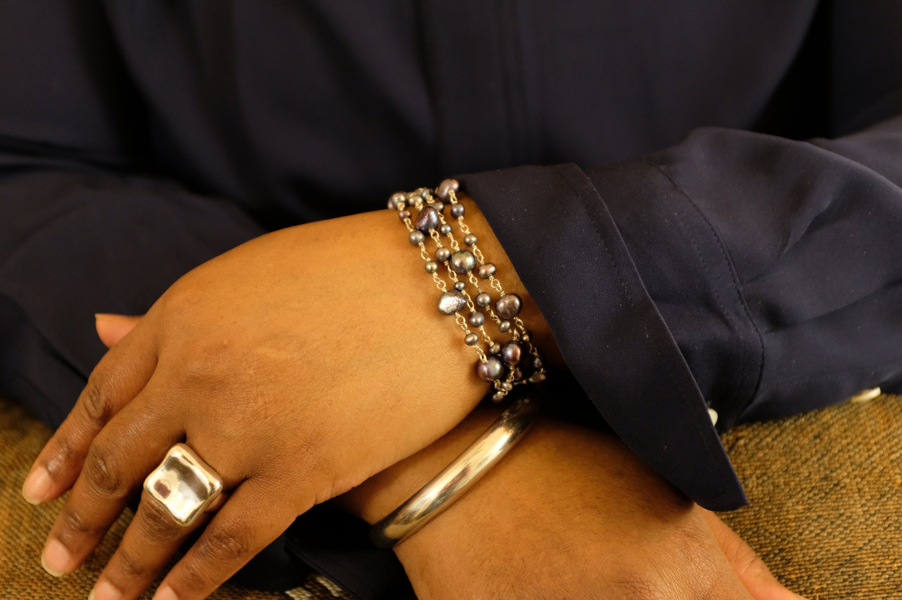 Embrace the timeless beauty of the sea with this striking multi-strand baroque pearl bracelet. It’s a modern heirloom designed to turn heads and spark conversation.