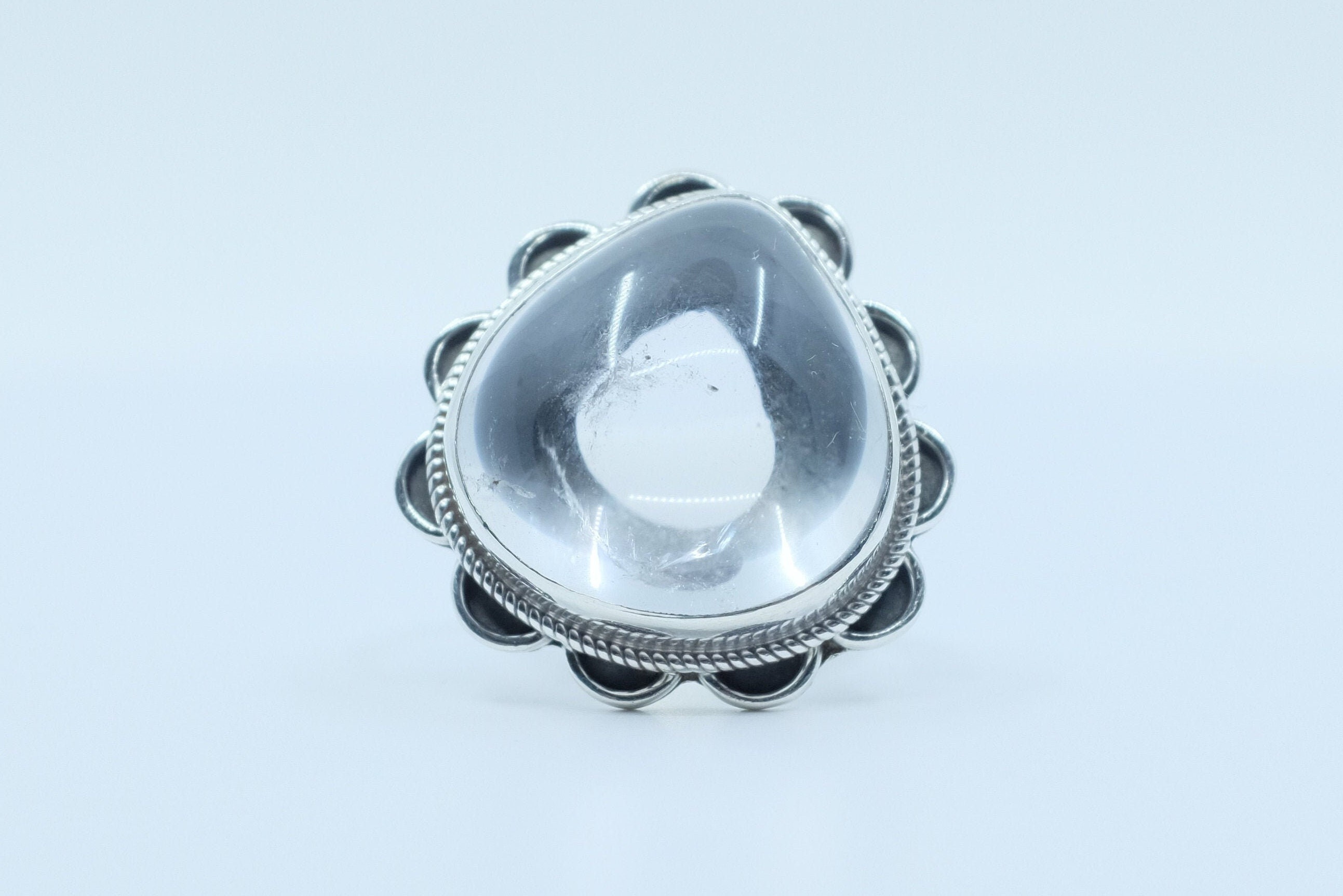 Clear quartz ring in sterling silver.